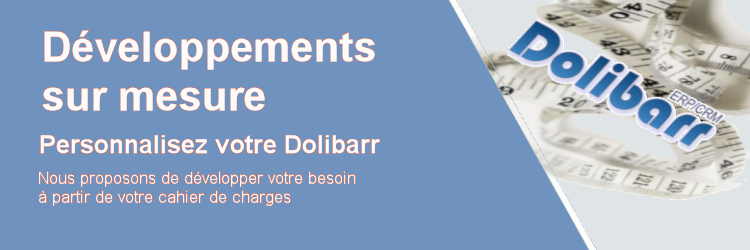 - Développement de modules prêts à l’emploi (Disponibles sur le DoliStore et/ou sur notre site)