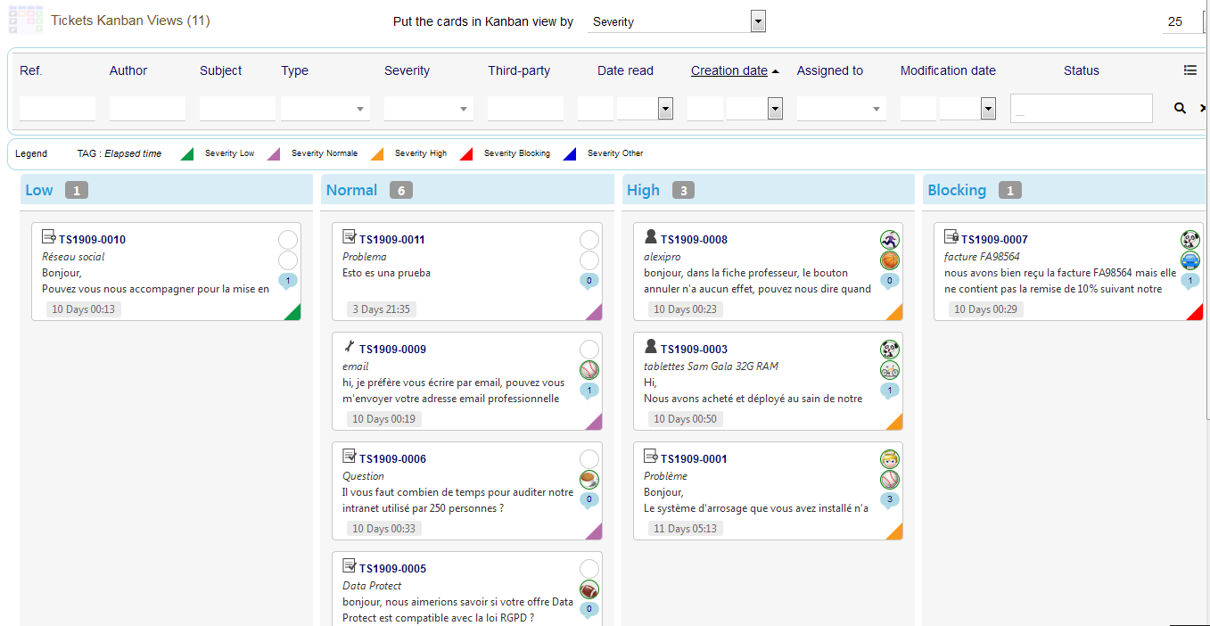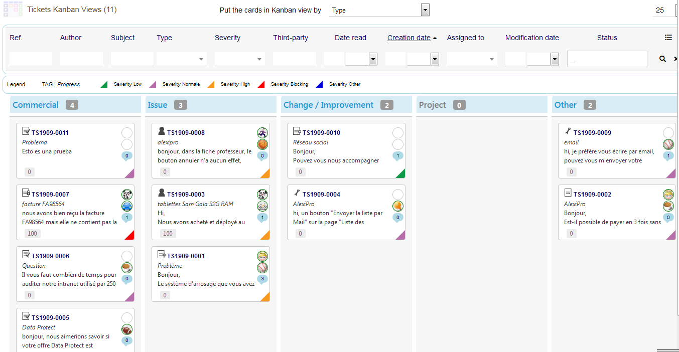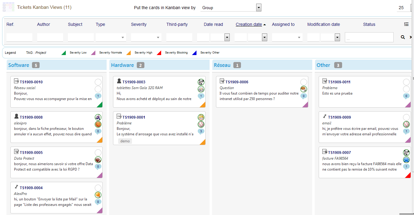 With this module, it is possible to classify Tickets in different ways in Kanban “user friendly” views.