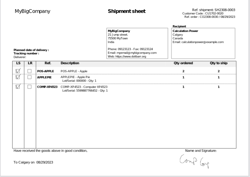 The MerouSign module for Dolibarr adds a pdf printing template to Shipment sheets for electronically signing the generated pdf, thereby shortening the print / sign / scan cycle.