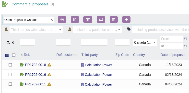 It is presented in the form of a toolbar which is placed above the Dolibarr lists.