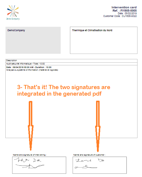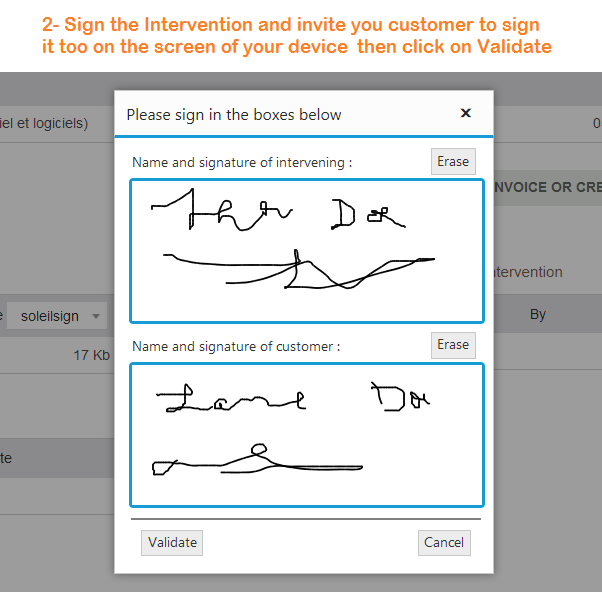 - The Intervening and the Customer can sign it directly on the screen, thanks to SoleilSign.