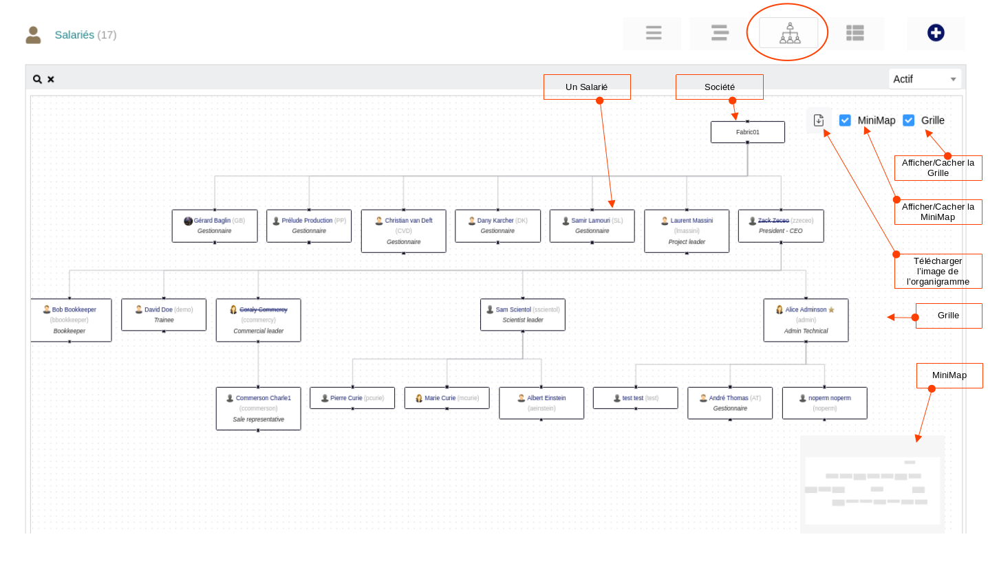 Un click sur ce bouton affiche l’organigramme de votre société.